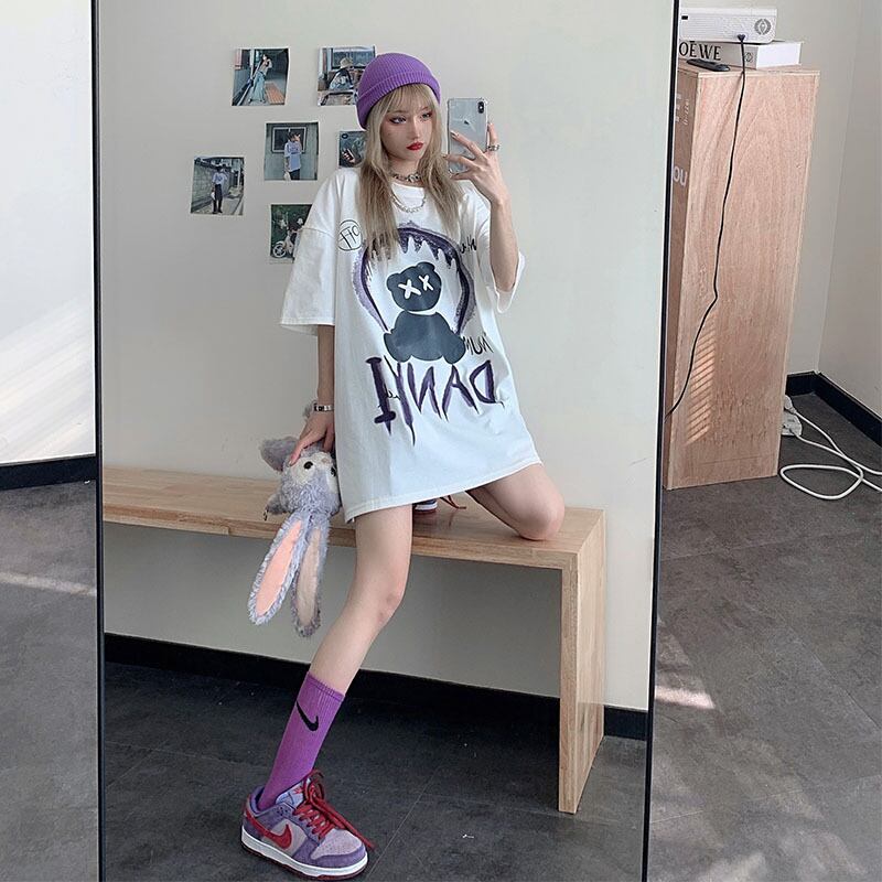 プリント半袖Tシャツ 半袖 Tシャツ トップス カットソー 半袖Tシャツ Tシャツ プルオーバー フロントプリント クルーネック オーバーサイズ アメカジ カジュアル ストリート 2カラー aa4211