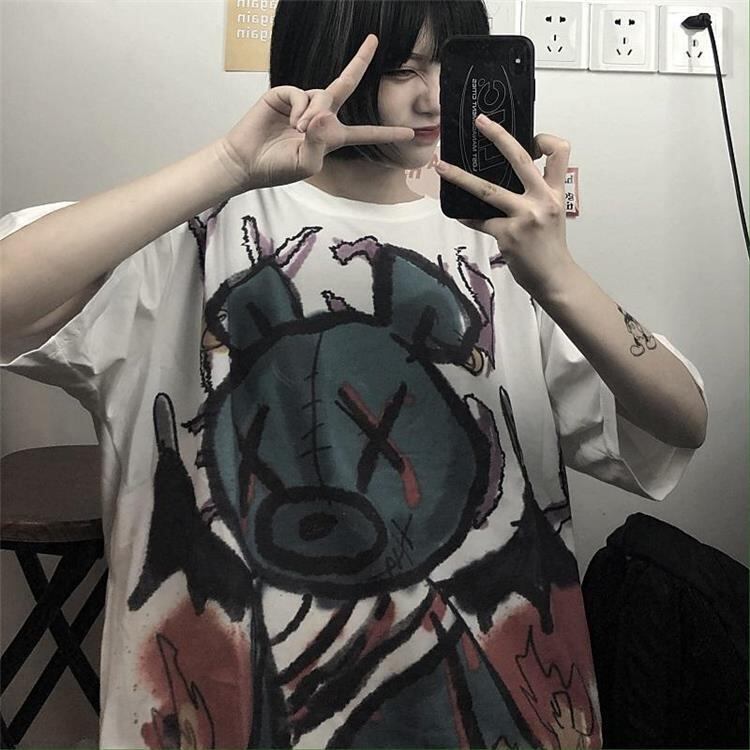 【M-3XL】プリント半袖Tシャツ 半袖 Tシャツ トップス カットソー 半袖Tシャツ Tシャツ プルオーバー フロントプリント クルーネック オーバーサイズ アメカジ カジュアル ストリート 2カラー a4769