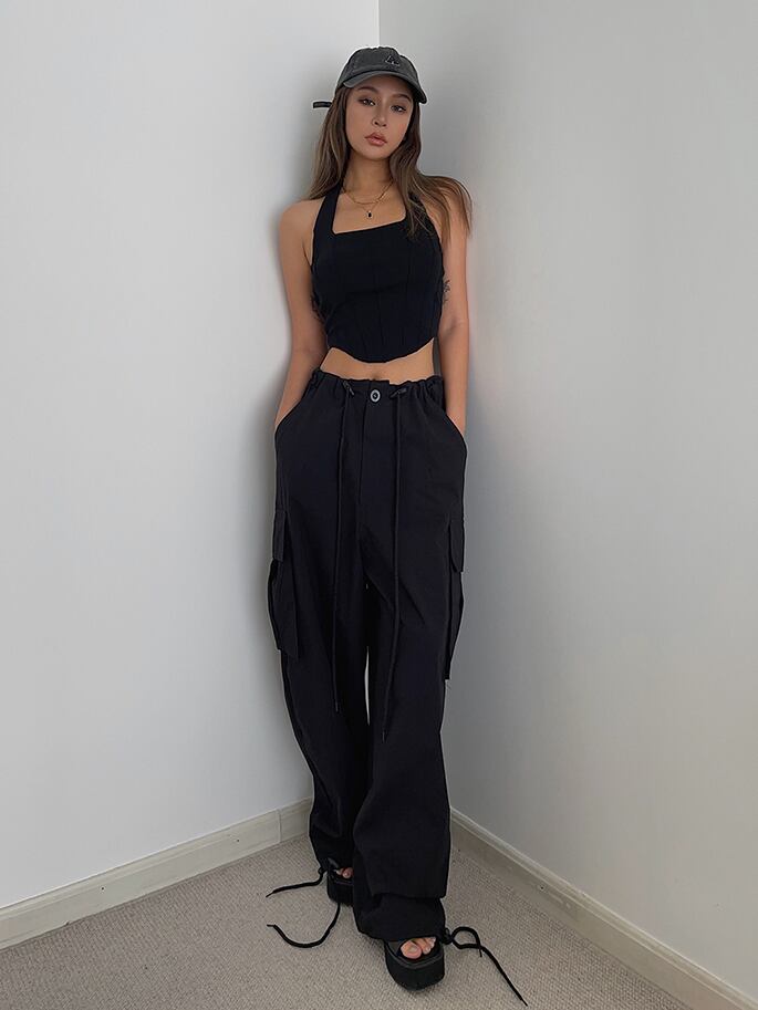 ワイドカーゴパンツ ベイカーパンツ カーゴパンツ 春 夏 秋 レディース ナイロンイージーワイドカーゴパンツ 可愛い 10代 20代 30代 40代 4カラー a4802
