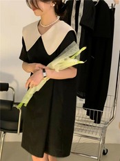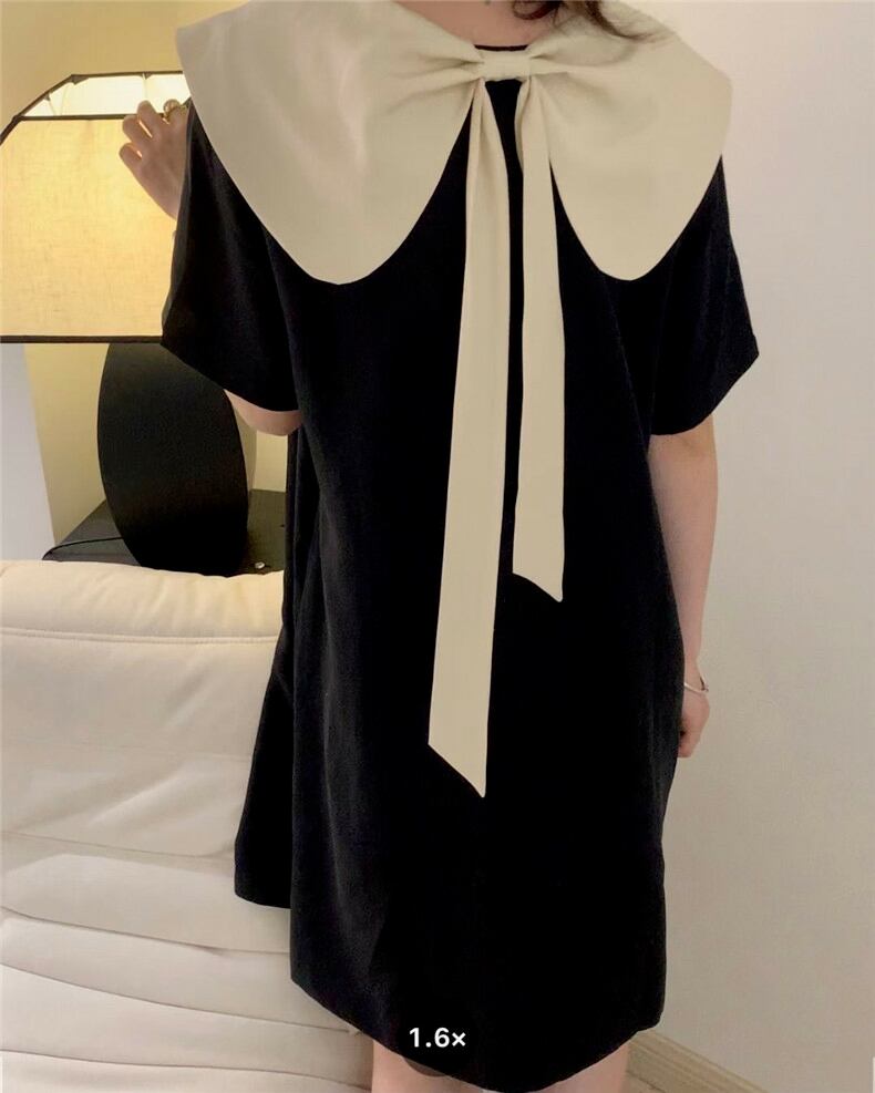 【S-3XL】ビッグカラーバックリボン半袖ワンピース レディース ワンピース ドレス レディース 綺麗め 春 夏 春夏 秋 ミニ ミニ丈 膝上 ゆったり カジュアル かわいい 大人 韓国系 ブラック ベージュ D268