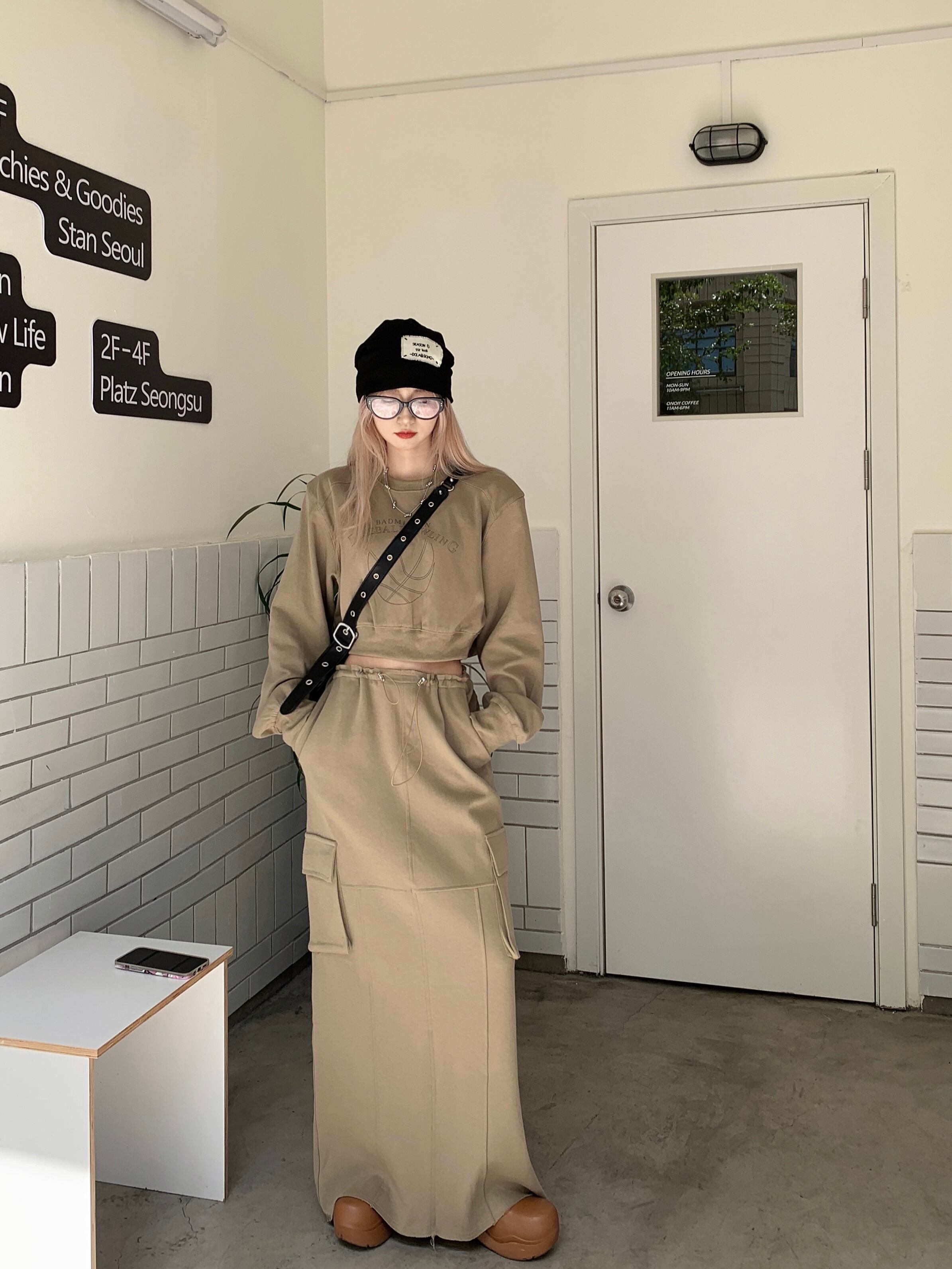 【セットアップ】クロップド丈 セーター+スウェットスカート. 上下セット. set up. レディース スウェット ロングスカート オルチャン 韓国 可愛い オシャレ スカート. C345