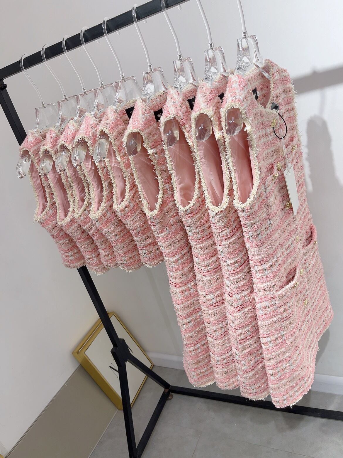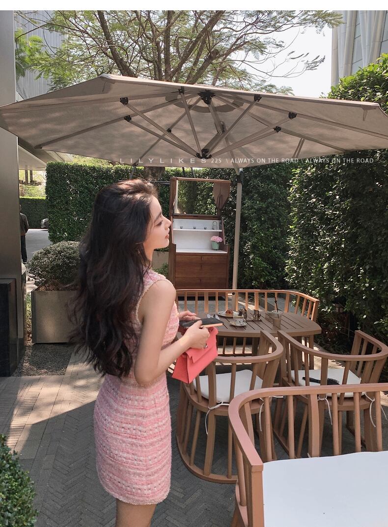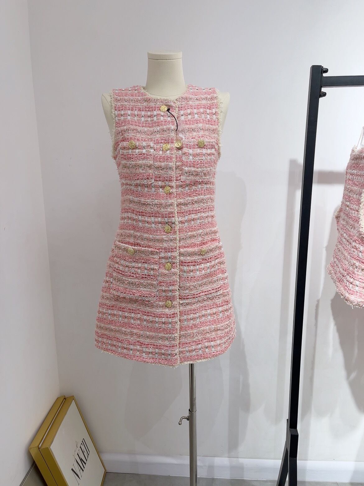 ノースリーブツイードドレス ツイードワンピース ゴールドボタン ツイード 大人上品 ワンピース ドレス ジレワンピ レディース ピンク 可愛い オシャレ 上品 トレンド お呼ばれコーデ パーティー デート a4846
