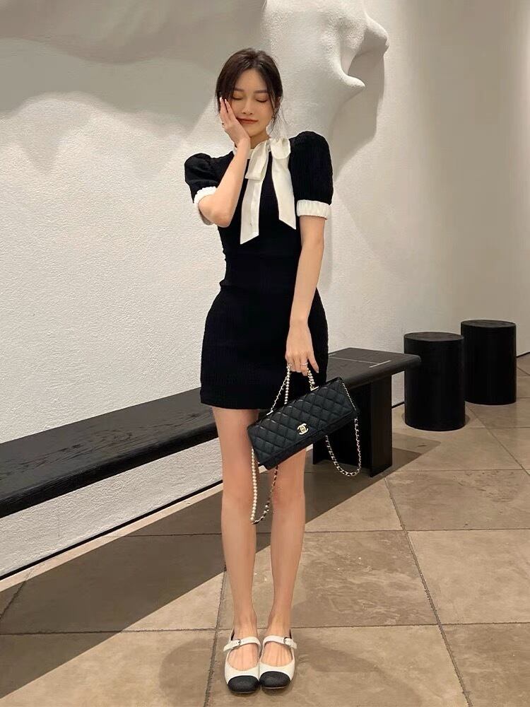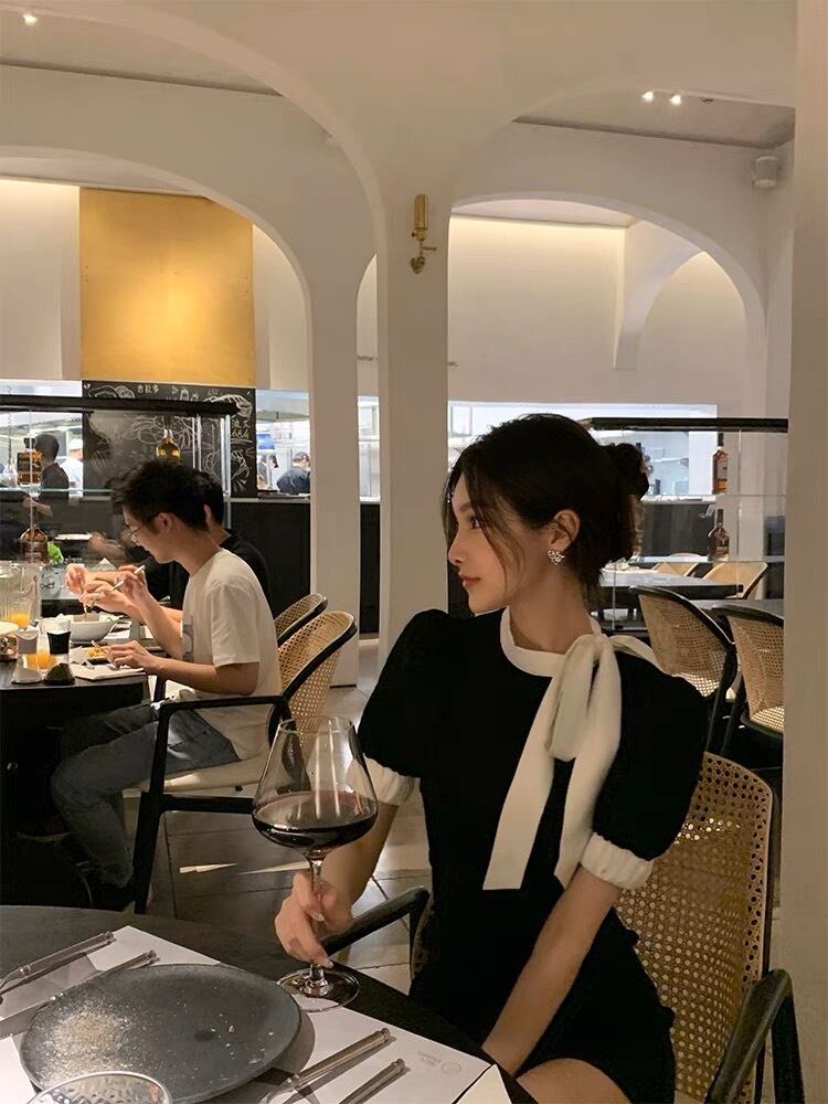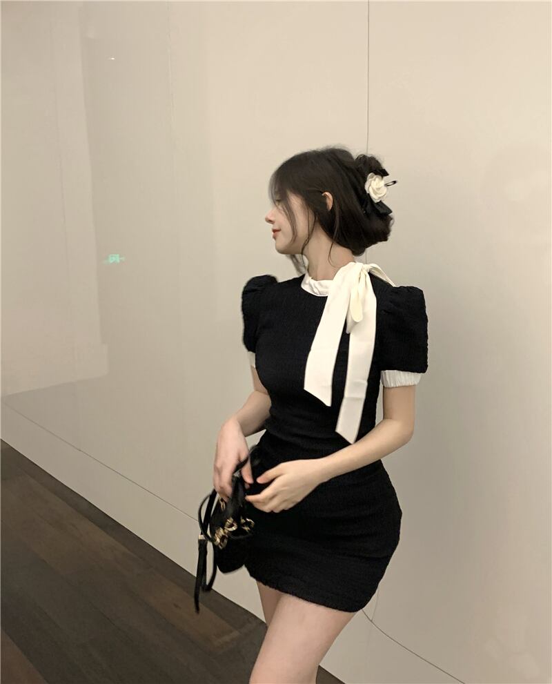 半袖ブラックワンピース. 首元リボン フレンチワンピース ミニワンピ. ワンピース ドレス パーティードレス 結婚式 お呼ばれドレス 二次会 お呼ばれワンピース ショート ミニ丈 春 夏 C389
