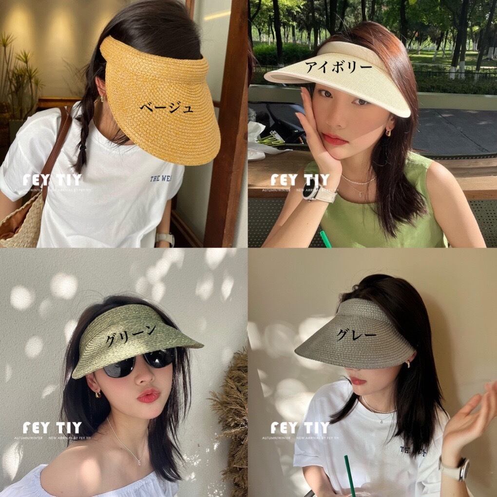 麦らわサンバイザー ストローサンバイザー ラフィア サンハット 麦わら ハット 帽子. レディース. サンバイザー 4カラー D586