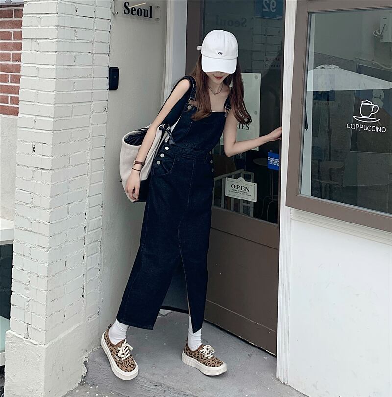 【S-4XL】デニムサスペンダースカート サロペット デニム レディース ロング スカート ノースリーブ タイト スリット入り 無地 スリム 着痩せ セクシー 韓国風 20代 30代 40代 春 秋 夏 D521