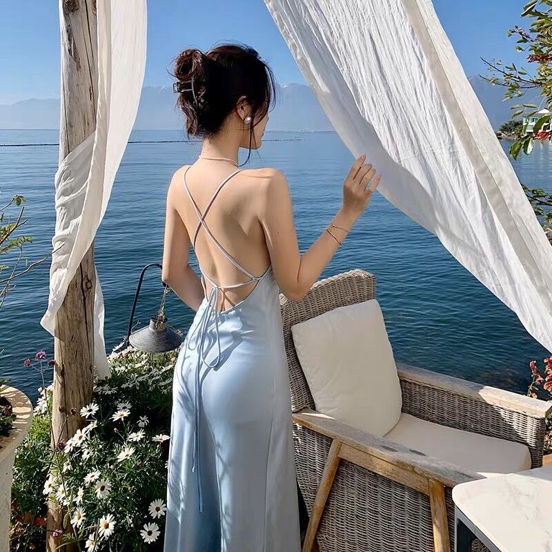 サテンキャミソールワンピース サマーワンピ サテンワンピース ワンピース サマードレス ハイウエスト ホリデー ビーチ バケーション a4906