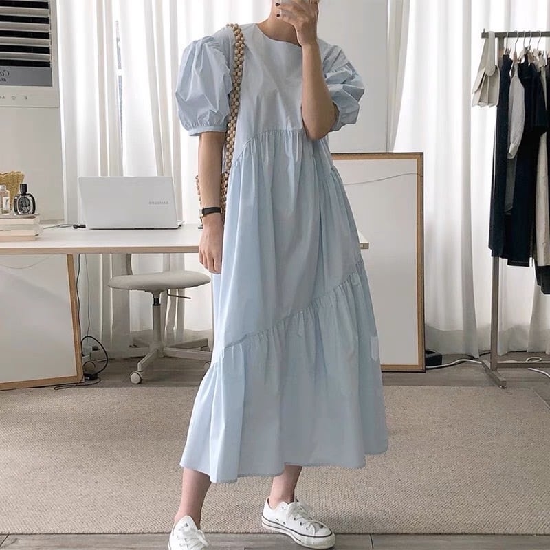 レディース ワンピース 春 夏 秋 半袖 パフスリーブワンピース ロング丈 フェミニン きれいめカジュアル カジュアル 秋冬 フリーサイズ C500