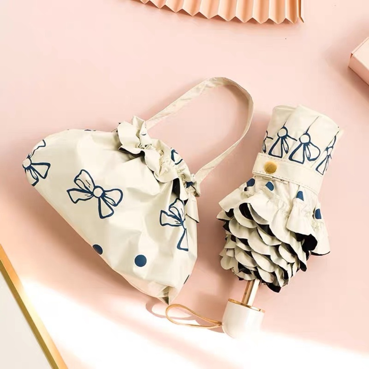 大人かわいいリボンデザインが魅力の折りたたみ日傘。