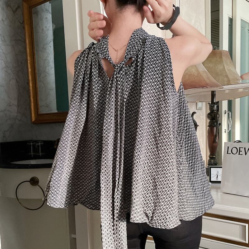 ノースリーブブラウス ホルターネック バックリボン ノースリーブ ブラウス ジレ シャツ トップス レディース 薄手 20代 30代 40代 ファッション a4950