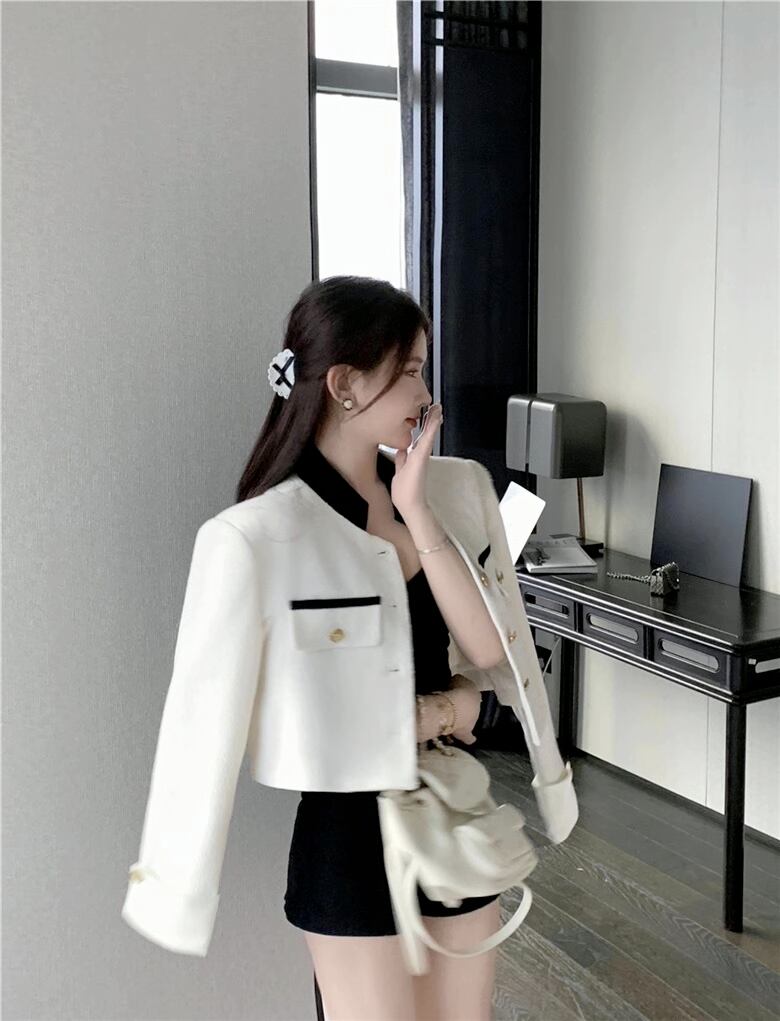 バイカラージャケット ショートジャケット ジャケット アウター レディース 可愛い オシャレ 韓国 薄手 20代 30代 40代 ファッション a4973
