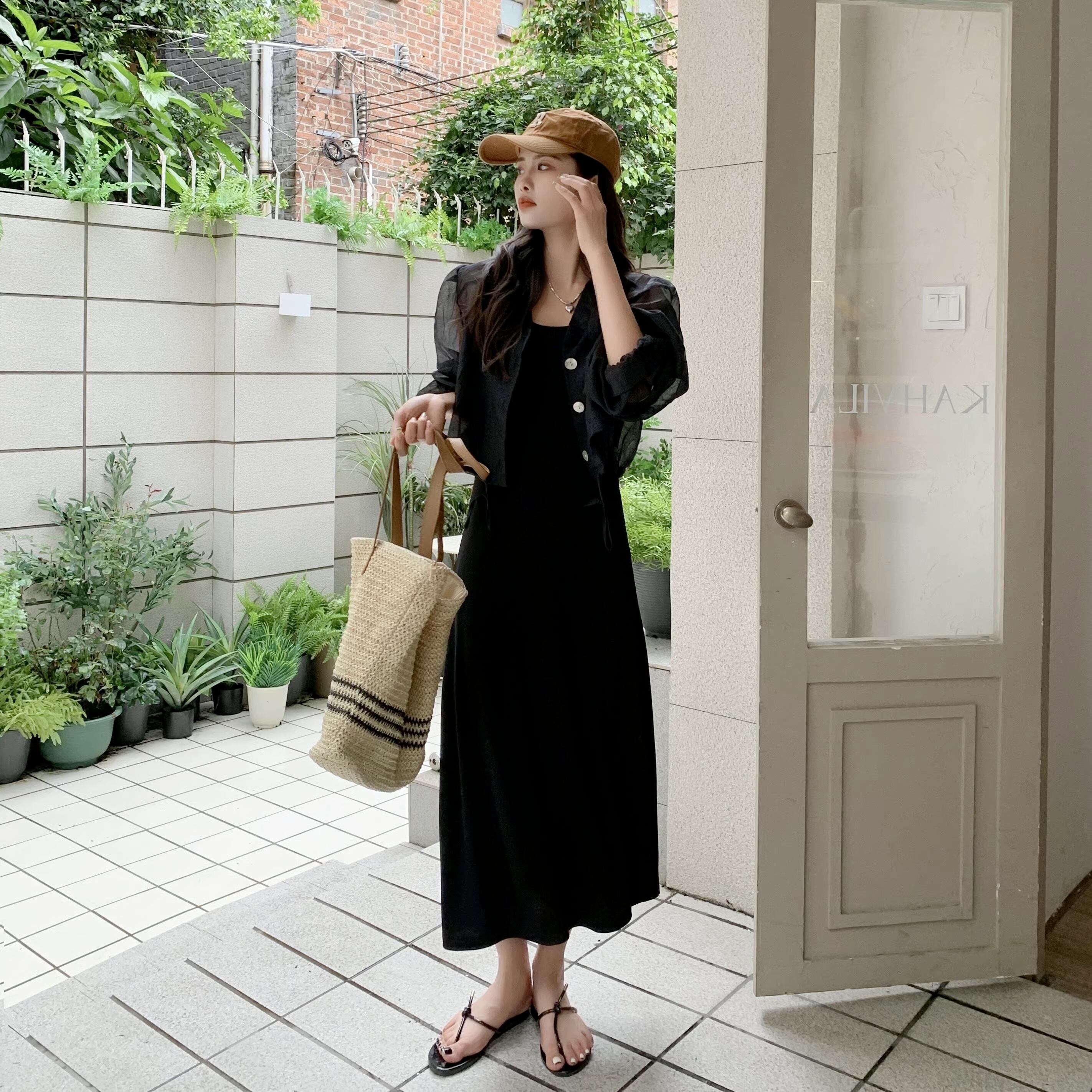 【セット】キャミソールワンピース+シアーシャツ