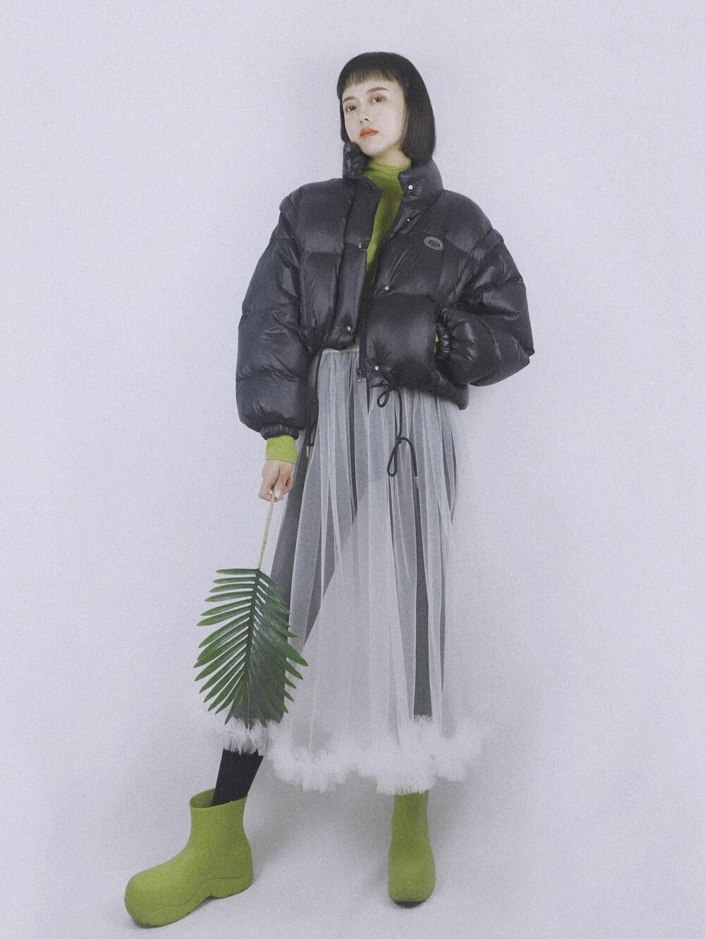 女性らしいシアーメッシュ素材のフリルボリュームスカートです。