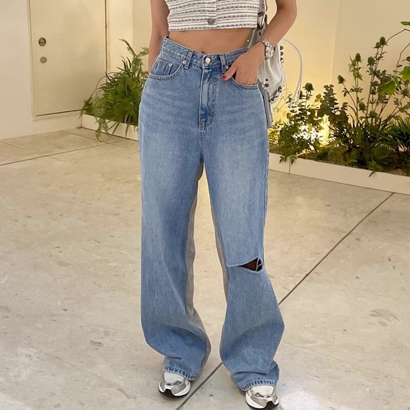 カジュアルで個性的なスタイルを演出してくれる異素材MIXダメージデニム