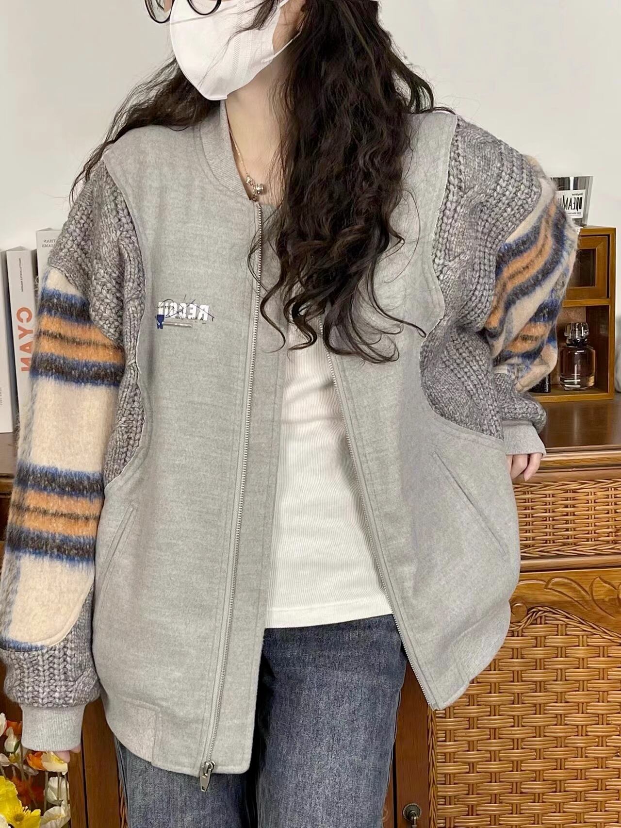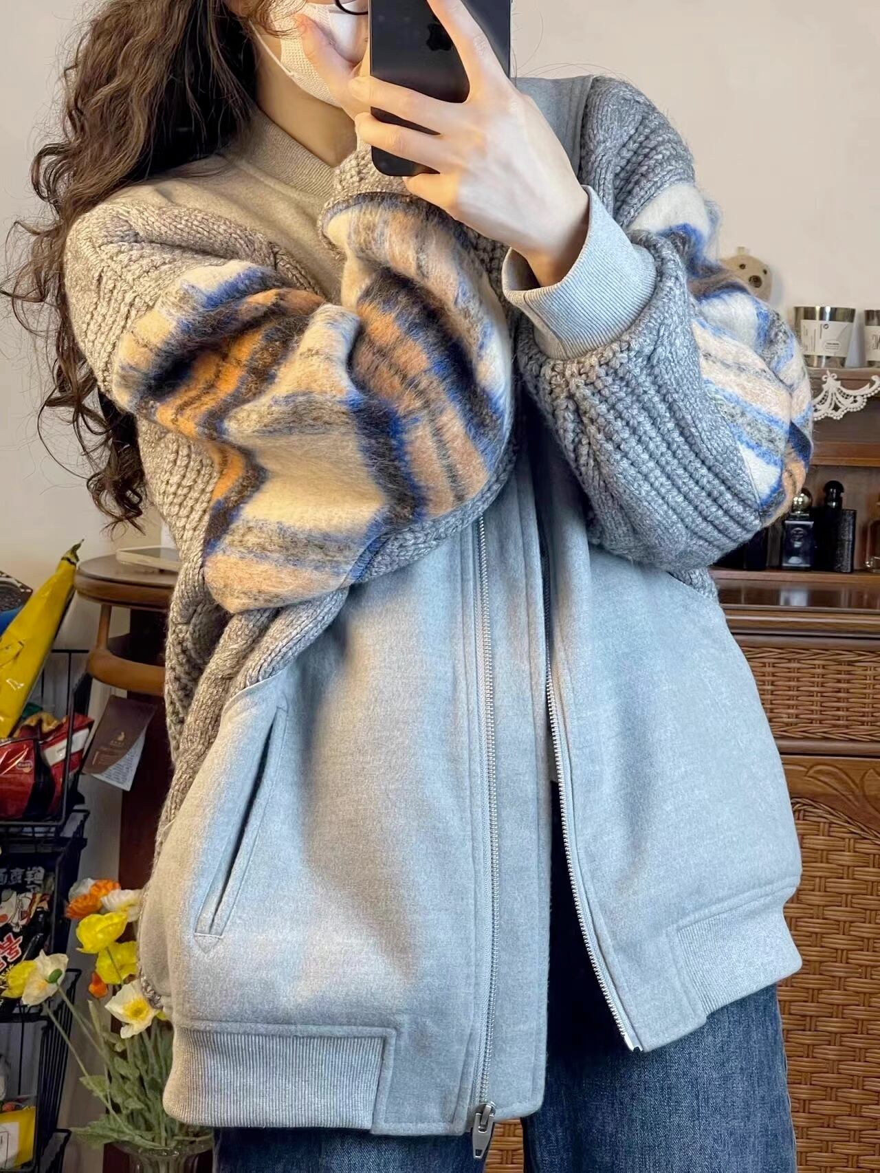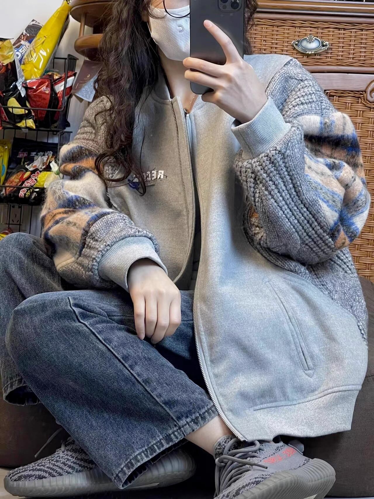 チェック柄ニットジャケット 異素材MIXジャケット ニットジャケット ジャケット ニット. アウター ブルゾン ジャンパー ウインドブレーカー ルーズ レディース メンズ ユニセックス 人気 トレンド a4653