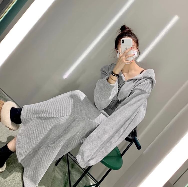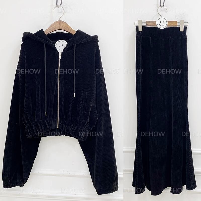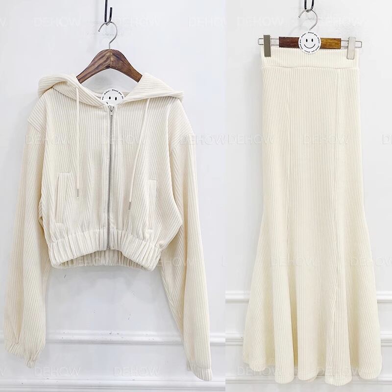 【セットアップ】パーカー+マーメイドスカート フード付きショートセーター ロングスカート set up 上下セット レディース 2点セット ニットアップ 3カラー a5021
