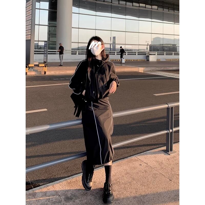 【セットアップ】ショートジャケット+ミモレスカート ウインドブレーカー ジャケット スポーティー set up レディース スポーツウェア カジュアル C456