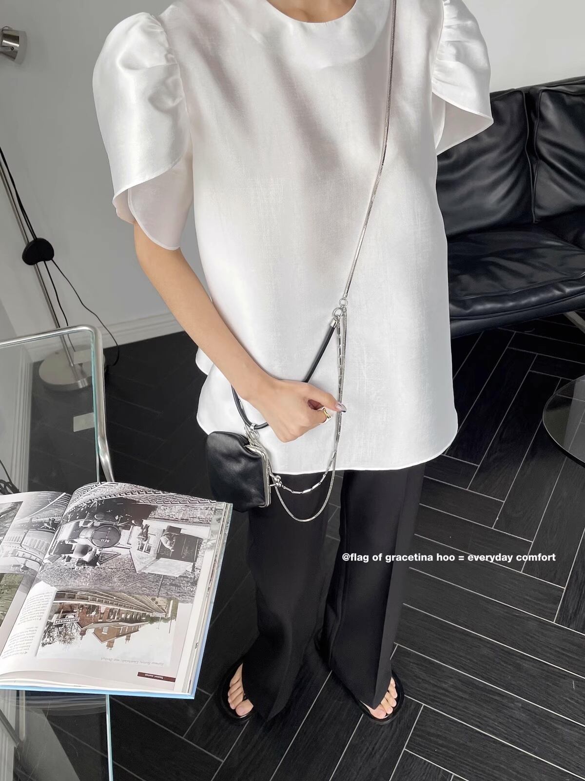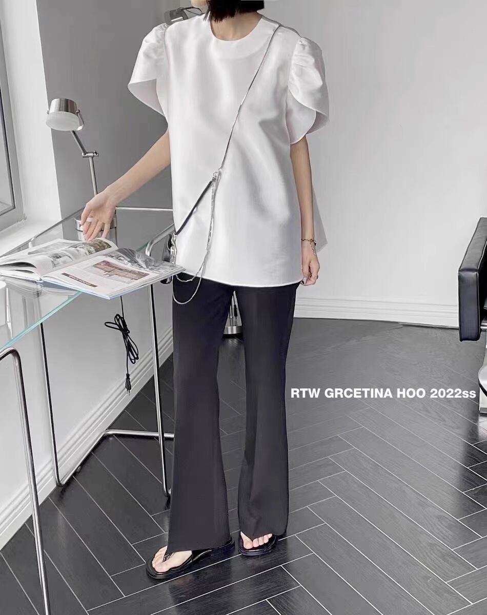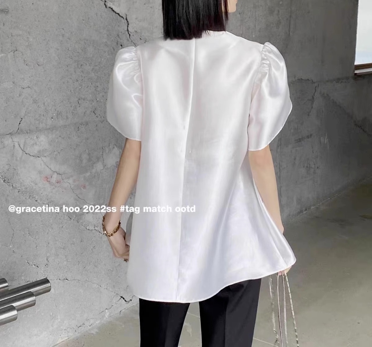 チューリップスリーブトップス ブラウス チュニック トップス オーバーサイズ プルオーバー レディース 春 夏 秋 冬 半袖 丈長め 袖コンシャス かわいい カジュアル 大人かわいい お出かけ 女子会 デート 韓国ファッション C461