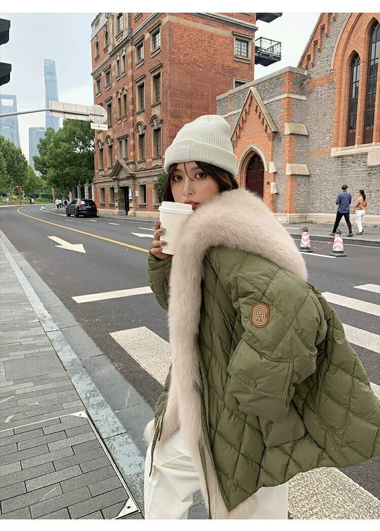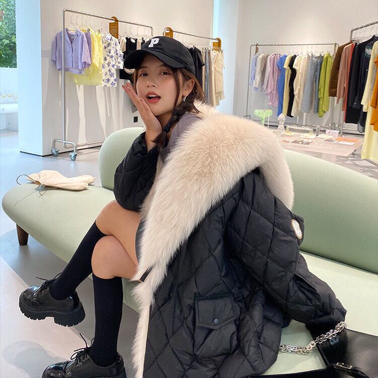 BIGファーダウンジャケット オーバーサイズ ファーダウンコート イミテーションフォックスファーカラー ダウンジャケット レディース 暖かい ミドル丈 ゆったり a5030
