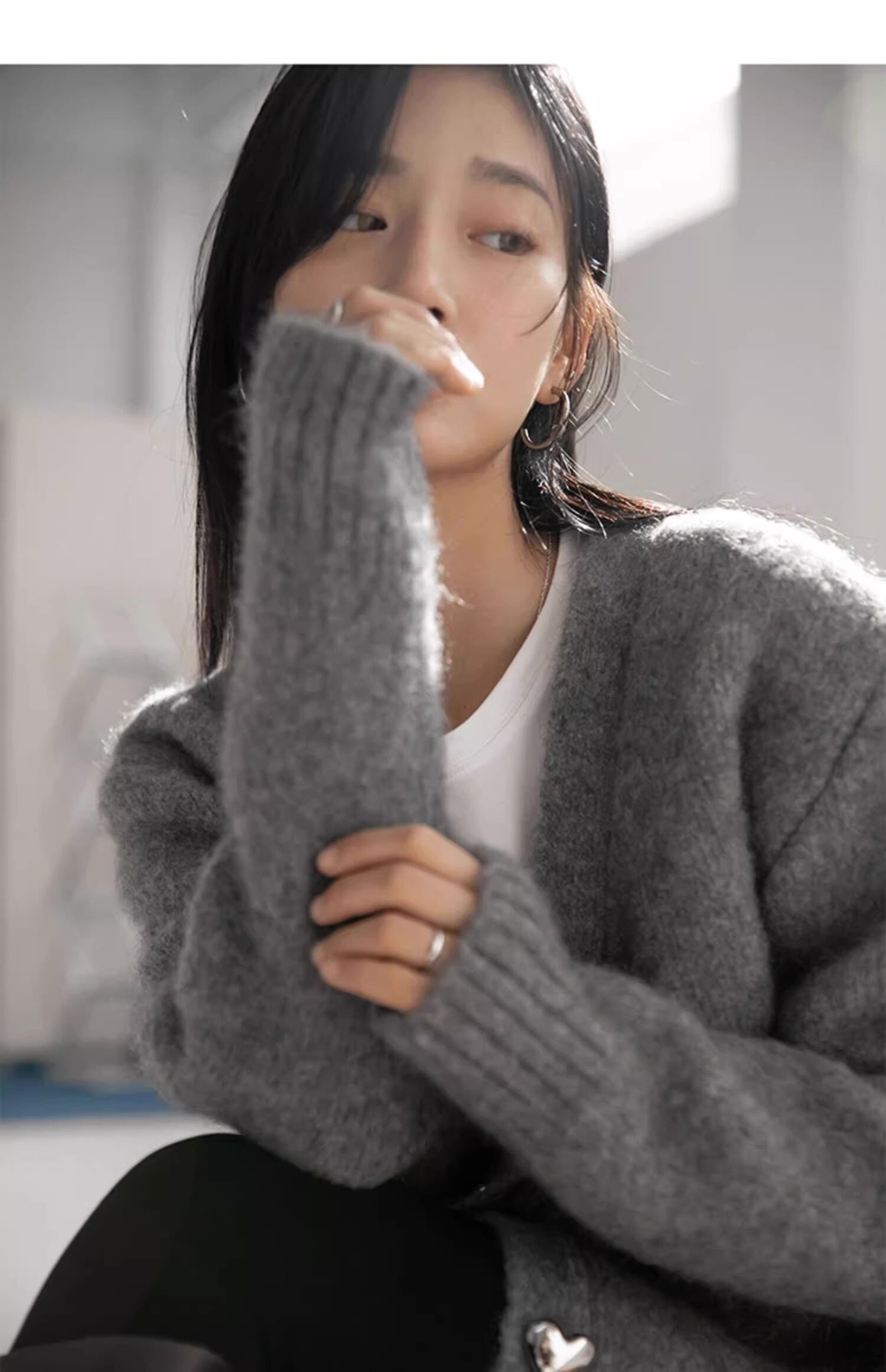 ハートボタンニットカーディガン ぷっくり ハートカーディガン ニットカーディガン アウター カーディガン. レディース オフィスコーデ ママコーデ お出掛けコーデ デート 可愛い オシャレ a5040