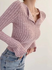 シンプルでオシャレなVネックリブニット