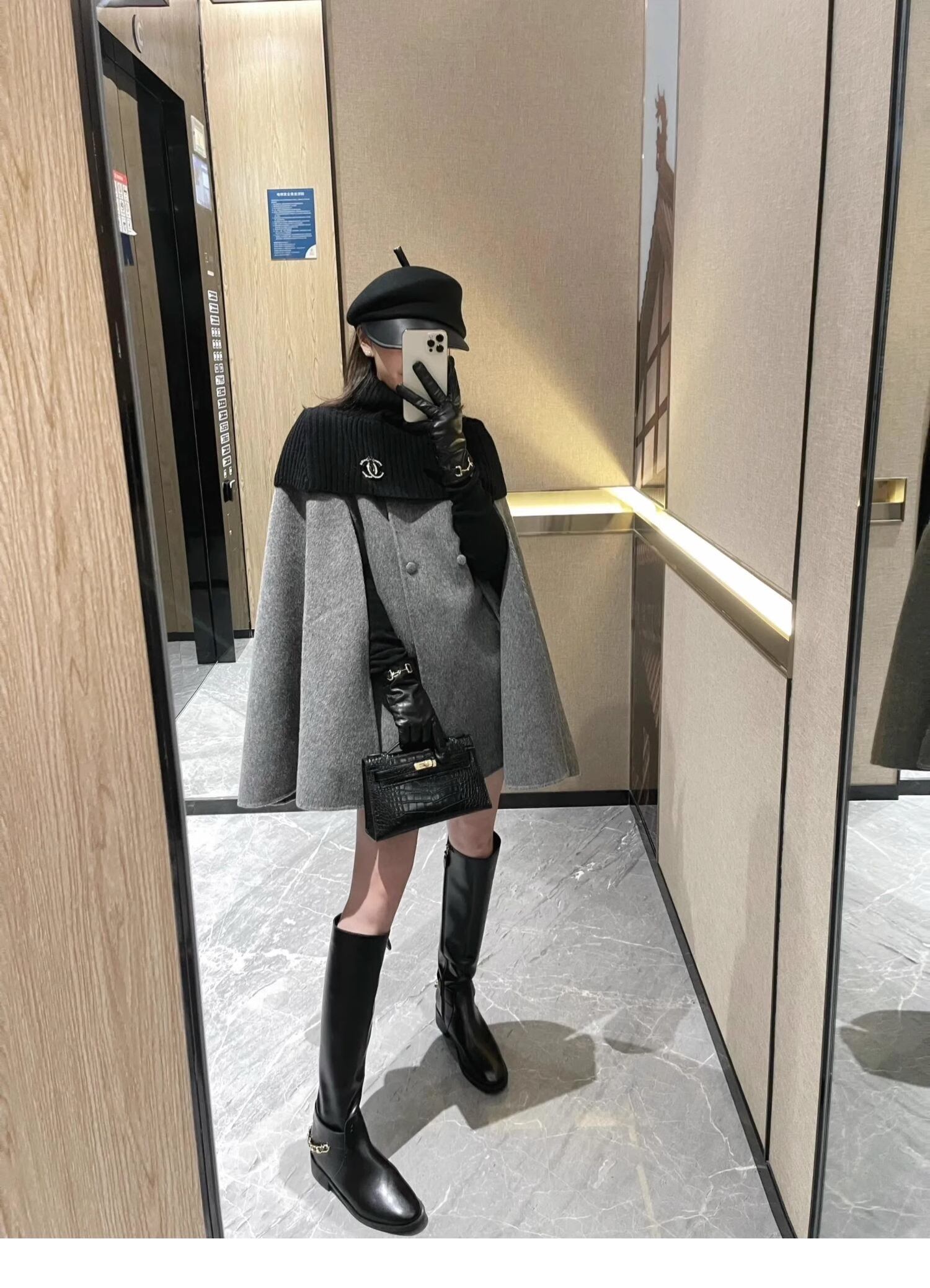 ニット ケープ 付き スリット ポンチョ コート レディース 可愛い 上品 オシャレ お呼ばれコーデ デートコーデ a5059