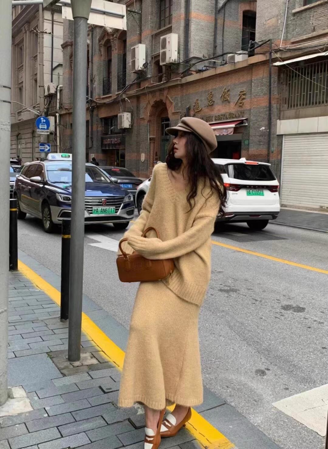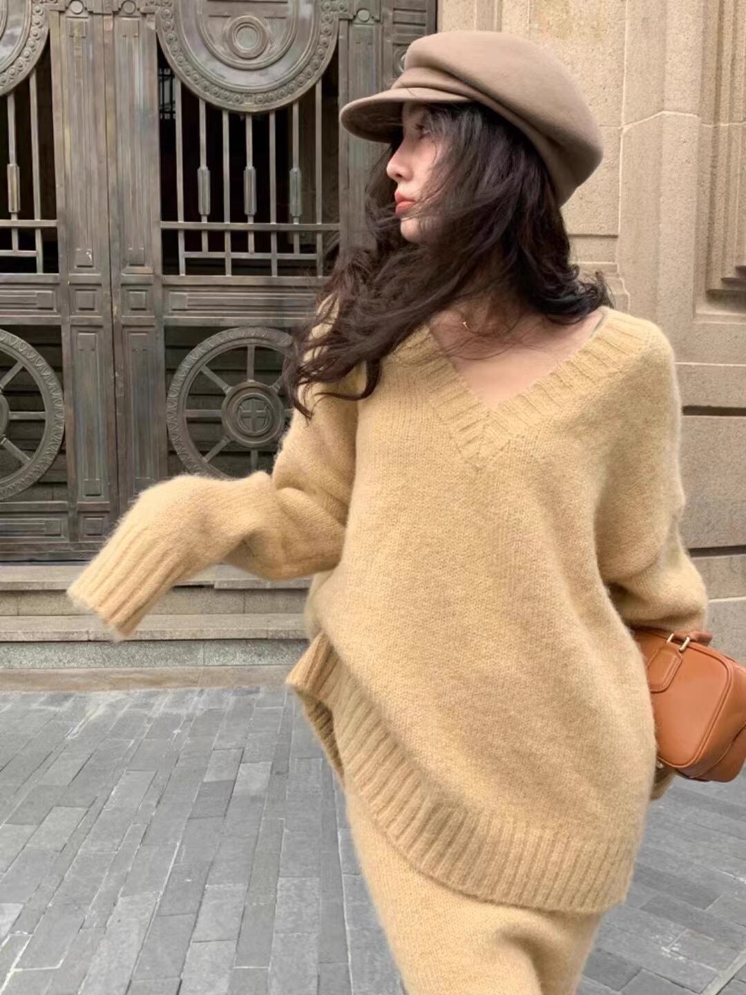 【セットアップ】Vネックニット+ニットスカート