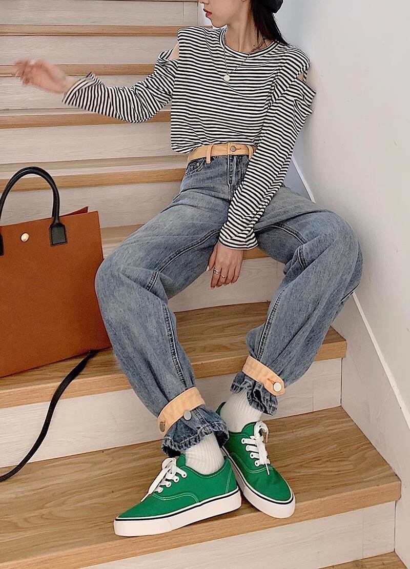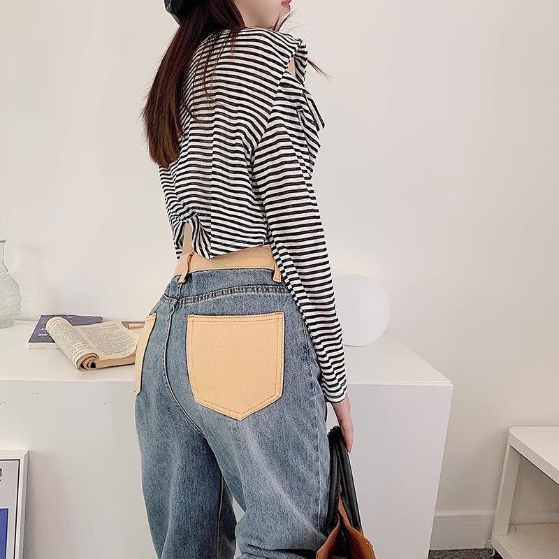 【大きいサイズあり】コントラストカラージーンズ ストレートジーンズ ハイウエスト ジーンズ デニム ジーパン ボトムス レディース カジュアル ストリート アメカジコーデ オシャレ 可愛い a5070