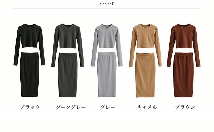 【セットアップ】ショートトップス+タイトスカート set up 上下セット ツーピース 長袖 ミディスカート Tシャツ スカート スタイルアップ アメカジコーデ カジュアル ストリートコーデ デート a4672