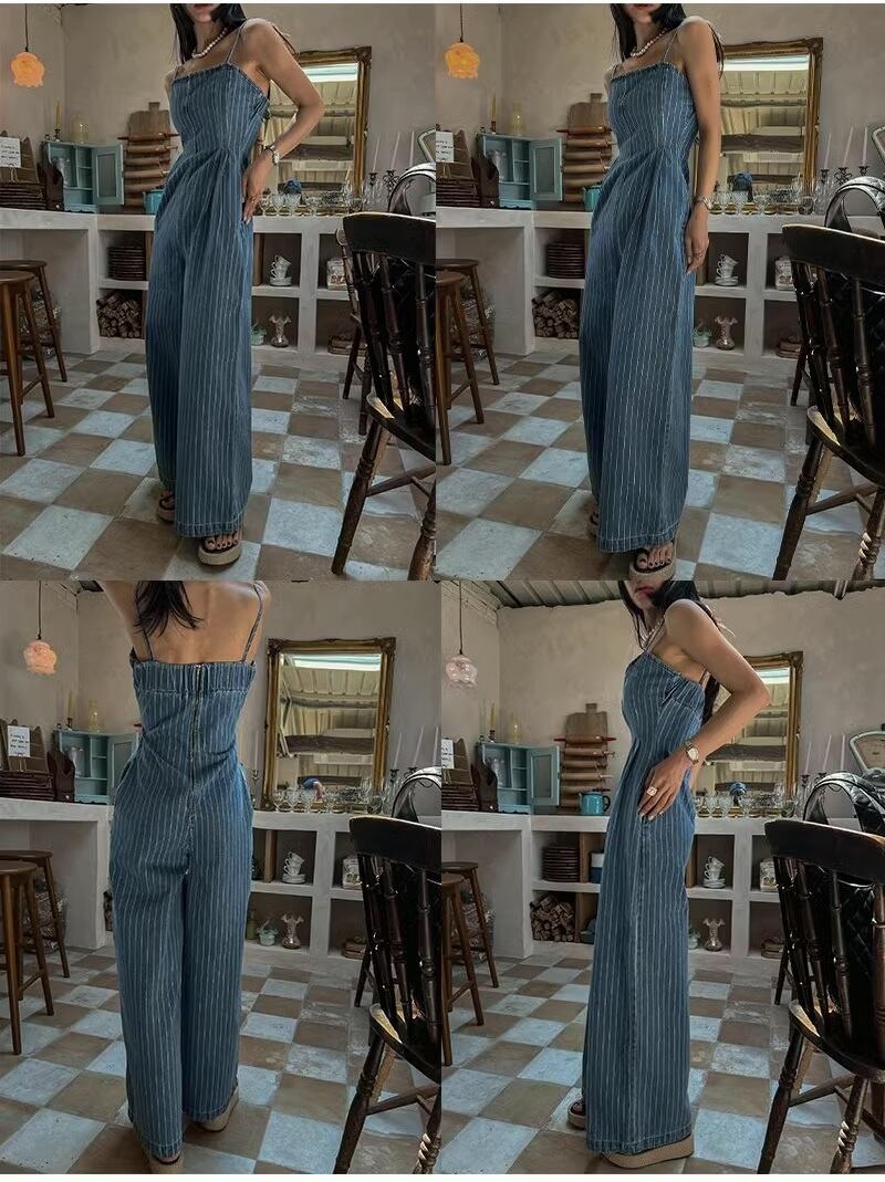 ストライプサロペット レディース サロペット オールインワン キャミオールインワンサロペットパンツ ジャンプスーツ ストライプ柄 ハイウエスト タック ワイドパンツ 華奢見え 楽ちん ポケット カジュアル 大人カジュアル きれいめ 上品 デニムブルー お洒落 春夏 春 夏 秋冬 秋 ママ ママコーデ 20代 30代 40代 デート お出かけ 普段使い 韓国 トレンド 可愛い 大人 大人女子 大人可愛い 通学 学生 女子会 着回し デイリー こなれ感 インスタ映え スタイルアップ 脚長効果 a4719