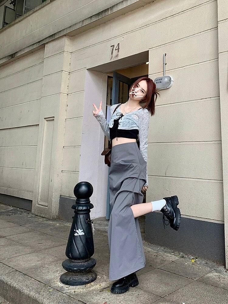 スリット入りロングスカート ロングスカート ハイウエスト サイドスリット カーゴスカート スカート スカート マキシ丈 タイト 黒 くしゅくしゅ レディース 春 夏 秋 ミリタリー ストリート カジュアル ブラック 春 ミリタリースカート a4731