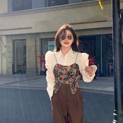 花柄ビスチェは胸元がキュートなデザインで、パフスリーブシャツはガーリーな印象を演出し、トレンド感のあるコーデが完成します^^