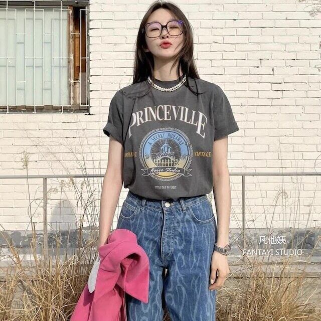 ロゴTシャツ プリントTシャツ 半袖Tシャツ Tシャツ. カットソー トップス レディース 春夏秋 カジュアルコーデ モード系 カジュアルストリート アメカジコーデ オシャレ 可愛い a4837