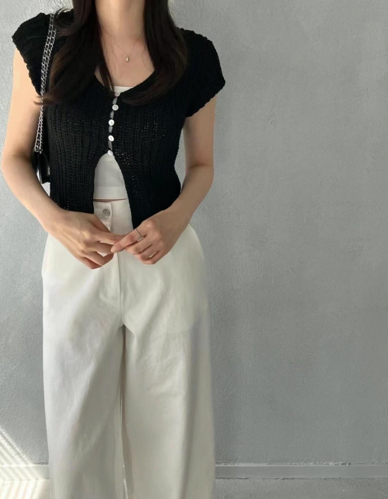 Vネック半袖ニット サマーニット. 半袖カーディガン 透かし編 スリット レイヤード 半袖ニット クロップドカーディガン セーター ニット カーディガン a5119